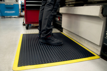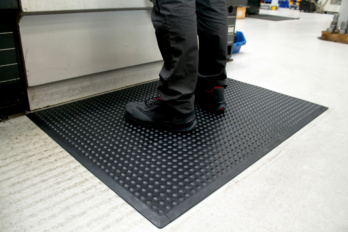 The nitrile floor mat features increased resistance to common oils and greases.
