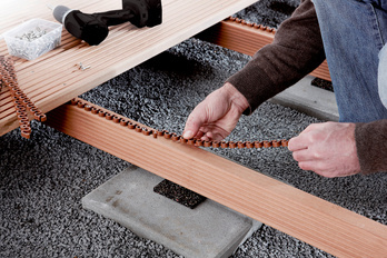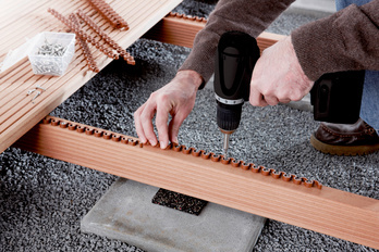The floorboards are then subsequently screwed down precisely in the middle on the beams